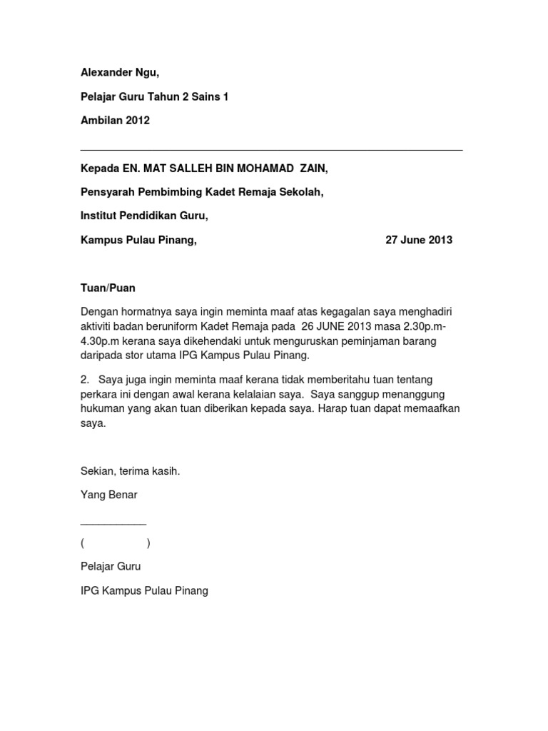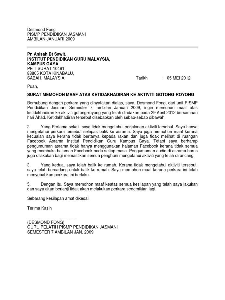 Surat Permohonan Maaf Rasmi Pdf